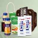 Experience the rich flavors of India with our Gourmet Indian Delight Gift Set. This carefully curated selection includes 150g of Amul's premium Fruit n Nut Bar and a 150g pack of silky Amul Milk Chocolates, perfect for those with a sweet tooth. For a quick snack, enjoy the tasty Amul Chocominis. Additionally, stay refreshed with two cans of Amul Kool and two pieces of lush Amul Lassi, alongside two refreshing Amul Butter Milk packs. All beautifully presented in a chic, eco-friendly jute bag, it’s a wonderful gift choice for any celebration.