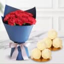 This gift combo includes: - 10 Red Carnation Tissue Wrapped Bouquet - Kheer Kadam (10 Pcs) Celebrate the beauty of love with our Carnations N Kheer Kadam Indulgence gift duo! This remarkable combo includes a stunning bouquet of 10 enchanting red carnations, exquisitely wrapped in tissue. Their vibrant colors and intoxicating fragrance symbolize deep admiration and affection. Paired with the bouquet are 10 pieces of Kheer Kadam, an irresistible sweet treat developed from rich kheer, crafted into bite-sized morsels. This blend of fresh flowers and mouthwatering sweets makes an ideal gift for any occasion, ensuring a heartfelt connection with your loved ones.