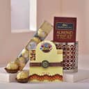 This gift set has: - Designer Om Rakhi - Cadbury Temptation Almond Treat Chocolate Bar 72gm - 4 pcs Ferrero Rocher Chocolate - Designer Metal Container Offer the best Raksha Bandhan to your dearest people by ordering online for them, this Graceful Om Bracelet Rakhi Combo that comes along with your blessings.