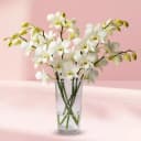 Deliver this Graceful White Orchids Glass Vase Arrangement and show your respect to someone who is not within us. This floral arrangement is made of: a) 10 White Orchids b) A Glass Vase