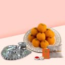 Haldiram Laddoo Treat with Elegant Aarti Thali and Festive Rakhi