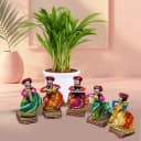 Gift an experience that celebrates the beauty of nature and the artistry of tradition. This exquisite Areca Palm Plant paired with a set of five delightful Rajasthani Musician Bawla Puppets captures the spirit of joyous living. The Areca Palm, known for its air-purifying abilities, flourishes in a stylish white pot, enhancing any space—indoors or outdoors. The charming Bawla Puppets, each representing a unique cultural essence, will bring joy and a nod to Rajasthan's artistic legacy. It’s the perfect gift for those who cherish nature and cultural richness.