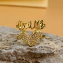 Showcase your affection with the Heartfelt Silver Ring. This stunning accessory features a heartfelt inscription of 'love' in gleaming silver, beautifully contrasted by a heart-shaped design embellished with sparkling cubic zirconia. A must-have for those who cherish unique elegance.