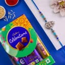 This is a gift of: - A Shiva Rakhi by Rakhi Sutra (QUR8219Y) - Cadbury Mini Celebrations (59.8g) - Complimentary Roli Tika N Chawal - Complimentary Message Card with Free Rakhi Make Raksha Bandhan extra special for your little hero with this delightful gift combo featuring a vibrant Shiva Rakhi by Rakhi Sutra (QUR8219Y). Inspired by the popular cartoon character, this Rakhi is sure to bring a big smile to your kid brother’s face. Paired with a pack of Cadbury Mini Celebrations (59.8g) filled with assorted chocolates, the combo adds a sweet treat to the occasion. With complimentary Roli Tika, Chawal, and a message card included, it’s the perfect blend of tradition and fun.