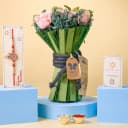 Holy Shree Krishna Rakhi N Artificial Floral Bouquet Combo