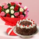 Invite decadence into your celebrations with this luxurious ensemble. Enjoy a 1 Kg Black Forest Cake, freshly crafted by the acclaimed 5 Star Bakery, featuring rich layers of chocolate, cherries, and cream. This delightful treat is complemented by an enchanting bouquet of multicolor roses, designed to bring a splash of color and joy to any occasion. Hand-delivered to ensure freshness, this combination is a perfect way to express your love and appreciation. Delight your dear ones with this sweet surprise!