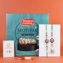 Celebrate the bond of brother and sister-in-law with this exquisite Joyful Bhaiya Bhabi Rakhi Celebration Gift. This set includes a stunning Rakhi pair symbolizing love and harmony, accompanied by 500g of delicious moti pak, perfect for sweetening the festivity. Essential roli tika and chawal are there for traditional blessings, along with a thoughtful message card to express your warm wishes. Make this Raksha Bandhan unforgettable!