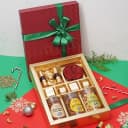This gift box contains: - 1 Red Velvet Cookie - 2 Strawberry Chocolate Logs - 2 Almond Chocolate Rocks - 4 Assorted Chocolates - 1 bottle Piri Piri Trail Mix - 1 Bottle Salted Almond - 1 Bottle Salted Cashew Embark on a journey of epicurean bliss with our Joyful Christmas Collections Gift Box gift box packed with exquisite chocolates and delectable nibbles. Indulge in the richness of our Red Velvet Cookie, savor the heavenly combination of Strawberry Chocolate Logs, and enjoy the delightful crunch of Almond Chocolate Rocks. And thats not all - this box also includes a tantalizing assortment of four chocolates, a bottle of Piri Piri Trail Mix for a burst of flavor, and bottles of Salted Almond and Salted Cashew for a truly blissful experience. Its a box that brings the ultimate indulgence to the true connoisseur.