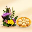 Jumbo Pedha from Chitale Bandhu Mithaiwale with Mixed Flower Arrangement