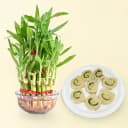 Kaju Cake from Mithas Delicious Sweets with 3 Tier Lucky Bamboo Plant