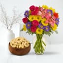 Kaju King from Shree Mithai with Mixed Flower Arrangement