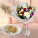 Kaju Pista Sandwich from Almond House with Seasonal Flower Bouquet