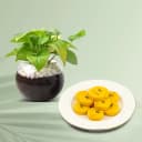 Kesar Peda from Dadus with a Money Plant in Glass Pot