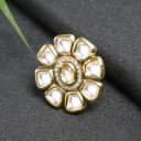This is a gift of: - A Kundan Ring Experience the fusion of traditional elegance and modern sophistication with this exquisite Kundan ring. The central Kundan gem, set in a finely detailed gold-plated band, adds a touch of radiant beauty that enhances any ensemble. Its timeless design makes it suitable for both casual wear and formal events, offering unmatched versatility. Whether youre dressing up for a celebration or adding a touch of elegance to your everyday look, this ring is the perfect choice. Ensure its longevity by spot-cleaning only and storing it separately, away from water and fragrances. With this Kundan ring, you don’t just wear a piece of jewelry; you embody a heritage of craftsmanship and timeless allure.