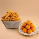 This gift combo includes: - Motichur Laddu (500g) - Murukulu (200g) Experience the perfect blend of sweet and savory with this delightful gift combo featuring 500 grams of Motichur Laddu and 200 grams of Murukulu. The Motichur Laddu, made from tiny pearls of chickpea flour, is soft, rich, and packed with traditional Indian flavors, making it a favorite for celebrations and special occasions. Paired with this sweet indulgence is Murukulu, a crispy and savory snack made from rice flour, offering a satisfying crunch with every bite. This combination of sweet and crunchy is perfect for those who appreciate a balanced snack experience, making it an ideal gift for festivals, family gatherings, or simply to enjoy with a cup of tea.