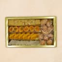 This Sweet Box is presented with : - 6 pc Kaju Katli - 6 pc Soan Papdi - 6 pc Kesaria Peda - 6 pc Mawa Gilory - Mini Kachori (100 gm) - Mini Samosa (100 gm) This delightful sweet and snack box brings together 6 pieces of classic Kaju Katli along with 6 pieces each of Soan Papdi, Kesaria Peda, and Mawa Gilory, offering a flavorful assortment for anyone with a sweet tooth. Complementing the mithai selection are 100 grams of crispy Mini Kachori and 100 grams of crunchy Mini Samosa, adding a savory punch to the mix. The balance of nutty richness, smooth textures, and spiced bites makes this gift box an ideal pick for those who enjoy a bit of everything in one package.