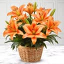 This arrangement is made of: - 8 Orange Lilies Gift this perfect Basket of 8 Orange Lilies to the ones who are dearest to you and let their spirits soar high above the clouds.