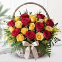 Send this surprise gift of Lovely Basket of Yellow N Red Roses to your special one and make him/her smile. Product Details: Flowers: 12 Red Roses and 12 Yellow Roses Fillers: Green Ferns and Fillers Gift Type: A Basket with Handle hand tied with Bow