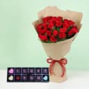 Delight your special someone with the stunning combination of 12 vibrant red roses and our exclusive gourmet chocolates. More than just a gift, this luxurious pairing brings joy and warmth, expressing your deepest emotions. The rich colors of each rose symbolize love and admiration, while the assorted chocolates provide a delightful indulgence that melts in your mouth. Perfect for celebrating anniversaries or simply to brighten someone's day, this enchanting ensemble is sure to create unforgettable memories.