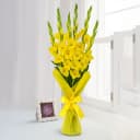 This bouquet is made of: - 10 Yellow Gladiolus - 10 Yellow Roses Merge your love with this Lovely Flower Bouquet of 10 Yellow Gladiolus n 10 Yellow Roses and send it to your dearest ones.