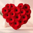 This heart-shape arrangement is made of: - 24 Red Gerberas Wrapped up with your love, this lovely Heart-Shape Arrangement of Two Dozen Red Gerberas will melt the heart of the one you send this to.
