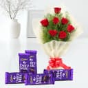 Lovely Red Roses Bouquet with Cadbury Dairy Milk