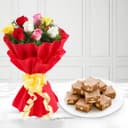 Luscious Kaju Choco Bites with Majestic Bunch of Mixed Roses