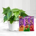 Discover the perfect blend of nature and sweetness with our Lush Philodendron Plant paired alongside a selection of luscious chocolate treats. This vibrant Philodendron, standing between 3 to 7 inches, thrives in any setting, purifying the air while bringing greenery into your home. Its stylish black tub adds a modern flair to your decor. Complementing this beautiful plant is a delightful trio of Cadbury Dairy Milk Silk chocolates: Hazelnut, Roast Almond, and Fruit n Nut. Each chocolate promises a delectable experience, ideal for those with a penchant for sweetness. This thoughtful gift is perfect for celebrating special moments, filling spaces with beauty and flavor.
