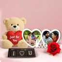 Let your loved ones feel special on Valentines Day with this Magnificent Love You Personalized Photo Gift Combo and frame the lovely moment in their heart forever. This Valentines Day Gift Combo include- - Dual Heart Love Personalized Photo Frame, - ILU Handmade 3 pcs Chocolate, - Just For You Message Teddy (6in) and - Red Velvet Rose. Please send a High Resolution Photo or Your Personalized Message that needs to be added to the product at designphotocake@gmail.com along with you’re Alphanumeric Order Number.
