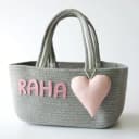 This is a gift of: - A Basket Introducing our Magnificent Storage Basket with Heart from Yellow Doodle, a beautifully crafted solution for organizing your little ones room sustainably. Handmade with care in India, this storage basket is made of 100% cotton rope, free of chemicals and toxins, ensuring a safe environment for your baby. The superior stitching and soft yet strong material make it a durable and practical storage solution. Measuring at 25 x 15 x 15 cms, this basket is the perfect size for storing a variety of items. Each piece is unique with slight variations that add to its charm. Keep your nursery clutter-free and stylish with this sustainable nursery basket, perfect as a baby shower gift for new parents. Easy to clean with a simple hand wash or wipe, this basket is not only functional but also adds a pop of color and happiness to any room. Make a positive impact on the environment while keeping your space organized with our Eco-Friendly Cotton Storage Bin. *Note: Colour - Grey, Easy to clean, simply hand wash or wipe with a damp cloth. PS- Personalisation (if any) could be on the medium basket/ large basket or both.
