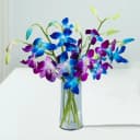 Elevate your space with the Majestic Orchid Display in Crystal Serenity. This exquisite arrangement showcases a harmonious blend of elegance, featuring four vibrant purple orchids and two tranquil blue orchids, all beautifully nestled in a shimmering glass vase. Each orchid tells a story of grace and beauty, turning any room into a peaceful retreat. Perfect as a thoughtful gift or a self-indulgent treat, this floral masterpiece is crafted to evoke joy and create unforgettable memories. Discover how the soothing colors and delicate blooms can uplift your spirit and illuminate your happiest moments.