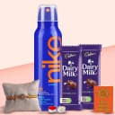 This Rakhi, gift your brother an exceptional set that embodies celebration! Our Men's Refreshing Deo Gift Set includes a 200ml bottle of Nike Original Deo, two delightful 13g Cadbury Dairy Milk chocolates, a colorful Rakhi, along with Roli, Tilak, and Chawal. Show your affection in a thoughtful and stylish way. Perfect for making cherished memories together! (Note: Designs may vary.)