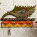 Mesmerizing Peacock Feather Styled Wooden Key Holder