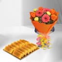 Milk Cake from Shree Mithai with Seasonal Flower Bouquet
