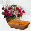 This gift combo includes: - 12 Roses N 4 Pink Lilies Basket Arrangement - Baked Mihidana (500 Gms) Brighten someones day with our delightful gift combo! It includes 12 fresh roses and 4 pink lilies arranged beautifully in a basket, radiating warmth and love. This eye-catching floral display is perfect for any occasion, from anniversaries to just saying I care. To sweeten the deal, we’ve added 500 grams of baked Mihidana, a cherished Bengali sweet treat with a light and crispy texture. This combination of vibrant flowers and delicious dessert offers a unique way to express your sentiments and create lasting memories. It’s a thoughtful gift that will surely be appreciated by anyone who receives it!