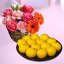 This gift combo includes: - 10 Mixed Flowers Arrangement (5 Roses + 3 Carnations + 2 Grbera) - Raj Bhog (10 Pcs) Spread happiness with our Mixed Flowers N Raj Bhog Gift Set, designed for those special occasions that warrant a little extra charm. At the heart of this set is a feast for the eyes: a stunning assortment of 10 mixed flowers, featuring 5 striking roses, 3 vibrant carnations, and 2 graceful gerberas that radiate freshness. To complement the beauty of the flowers, we include 10 pieces of Raj Bhog, a luxurious Bengali sweet made from delightfully soft cheese dumplings steeped in sugary syrup, flavored with the rich spices of saffron and cardamom. This unique gift is perfect for celebrating life’s precious moments or simply to show your loved ones how much you care. With this combo, you’ll make any occasion not only beautiful but also sweetly unforgettable.