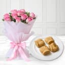 Send 10pc Nolen Gurer Jalbhora from K.C.Das with 10 Pink Rose Bouquet to your near ones. (Only Available at Kolkata)
