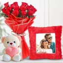 Imagine a delightful cushion customized with your favorite picture, paired with a breathtaking arrangement of ten fresh red roses and a lovable teddy bear. This enchanting gift isn't just an item; it's a collection of cherished memories ready to be embraced. Ideal for celebrating birthdays, anniversaries, or simply to express your affection, this personalized photo cushion transforms ordinary moments into extraordinary celebrations. Bring smiles to your loved ones as they snuggle with a unique blend of comfort, beauty, and heartfelt emotion.