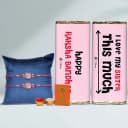 This personalized Rakhi gift combo include: - Personalized Cadbury Crackle (36 gm) - Personalized Cadbury Dairy Milk Fruit n Nut Chocolate Bar (36 gm), - 2pc Fancy Rakhi Set - Free Rakhi, Roli Tika and Chawal. Celebrate the bond of love with this Sweet Moments Rakhi Gift Combo that beautifully blends personalization with traditional charm. This set features a personalized Cadbury Crackle (36 gm) and a Cadbury Dairy Milk Fruit n Nut Chocolate Bar (36 gm), both customized to make your sibling feel extra special. Alongside these delicious treats, you get a stunning 2-piece fancy Rakhi set designed to add elegance to the celebration. To complete the festive ritual, the combo also includes complimentary Roli, Tika, and Chawal, essential for performing the sacred Rakhi ceremony with love and devotion. Perfect for expressing your heartfelt emotions, this combo is a sweet and thoughtful way to honor your sibling bond. Details needed: Send 2 digital photos with your Alpha-numeric order id at: designphotocake@gmail.com or Whatsapp at +91 9230721098.