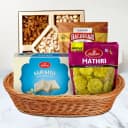 A perfect way to show your love, this Pretty Decorative Basket Hamper complemented will add an auspicious charm to the day. This Basket is loaded with Assorted Dry Fruits (200 gms), Haldiram Kaju Katli (200 gms), Haldiram Badam Lachha (200 gms) and Haldiram Methi Mathri (200 gms). There might be a slight change in the displayed design of Basket.