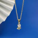 The Radiant Gold Pendant Necklace features an elegantly designed gold-plated chain paired with a stunning round-shaped pendant adorned with captivating sunray details. The lustrous gold finish enhances the pendant's charm, making it the perfect accessory for any occasion. This lightweight and smooth necklace is suitable for everyday wear—be it at work or special occasions. Its simplistic drop style beautifully complements a variety of wardrobe choices, from contemporary styles to classic traditional looks. Perfect for layering or for standalone wear, it makes a delightful gift for birthdays, anniversaries, and memorable celebrations, appealing to those who love gold jewelry.