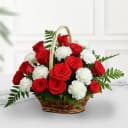 Surprise your loved ones with the Radiant Love Floral Basket, a stunning arrangement designed to convey your deepest emotions. This enchanting basket features 20 vibrant red roses paired with 10 elegant white carnations, all artfully arranged with delicate fillers and tied with a fashionable ribbon. Ideal for any celebration or 'just because' moment, this gift speaks volumes of your affection. Send warmth and joy their way with this charming floral display, guaranteed to leave a lasting impression.
