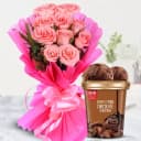 Radiant Pink Rose Bouquet with Chocolate Ice-Cream from Kwality Walls