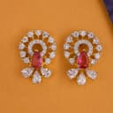 Elevate your style with these captivating ruby teardrop earrings, embellished with a dazzling arrangement of American Diamonds. Their opulent gold setting enhances their luster, while the pear-shaped diamonds cascading below complete a stunning silhouette. The unique halo design makes these earrings a statement piece for any celebration or formal occasion. Lightweight yet striking, they offer the ideal fusion of sophistication and modern flair.