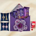 This gift set has: - Family Rakhi Set (1 Bhaiya Bhabhi Rakhi Pair with 2 Kids Rakhi) - Cadbury Dairy Milk Silk Chocolate Bar (55g) - Cadbury Dairy Milk Fruit n Nut Chocolate Bar (36g) - Cadbury Dairy Milk Crackle Chocolate Bar (36g) - Cadbury Dairy Milk Roasted Almond Chocolate Bar (36g) - Cadbury Dairy Milk Chocolate Bar (30g) - Free Message Card with Roli Tika, Chawal n Mouli Rakhi - Rakhi Gift Envelope Celebrate the joy of Raksha Bandhan with a thoughtfully curated Family Rakhi Set, featuring a beautiful Bhaiya Bhabhi Rakhi pair along with two charming Kids Rakhi. The combo comes with a mouthwatering assortment of Cadbury chocolates, including a Dairy Milk Silk (55g), Fruit n Nut (36g), Crackle (36g), Roasted Almond (36g), and the classic Dairy Milk (30g). Each bite adds sweetness to the celebration while the included Roli Tika, Chawal, Mouli Rakhi, and Message Card ensure every ritual is honored. A special Rakhi Gift Envelope completes the set, making this a perfect pick for your loved ones. (Details Needed: Please share a Digital Photos N Message along with your Alpha-numeric Order id on watsapp at: +91 9230721098 or email at: designphotocake@gmail.com)