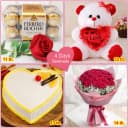 Render happiness to your loved ones on Valentines Day by ordering online, this Ravishing 4 Days Serenade Gift Hamper that they will cherish through their entire lifetime. This Serenade Gift for 4 Days is arranged with: - 16 pc Ferrero Rocher Chocolate Box with 1 Red Rose-11th Feb (Promise Day), - 10in Love Teddy-12th Feb (Hug Day), - 1 Lb Heart Shape Cake-13th Feb (Kiss Day) and - 24 Roses Bouquet-14th Feb (Valentines Day).