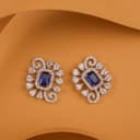 Enhance your elegance with these regal blue crystal stud earrings, adorned with a stunning rectangular centerpiece embraced by delicate pear-shaped crystals. The intricate swirls of shimmering details add to their luxurious flair, making them the ideal accessory for any formal occasion. Lightweight and versatile, these earrings will beautifully accentuate sarees, lehengas, or modern evening gowns.