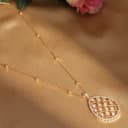 This is a gift of: - A Long Gold Chain with Kundan Jhallar Pendant Step into elegance with this exquisite long gold chain adorned with a stunning Kundan Jhallar pendant. The detailed Kundan work on the pendant adds a unique touch to the sleek gold chain, making it an ideal accessory for special occasions or formal events. The necklaces sophisticated design guarantees that it will enhance any outfit with a touch of royal charm. Perfect as a gift or a personal indulgence, this necklace promises both beauty and quality. Care Tips: Spot-clean only, store in a separate box, and keep away from fragrance and water to maintain its brilliance and craftsmanship.