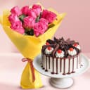 Experience the essence of romance with our Romantic Delight: Roses & Decadent Cake. This enticing pair consists of a breathtaking bouquet of 12 gorgeous pink roses, beautifully garnished with a delicate pink ribbon, exuding love and tenderness. Complementing these lovely flowers is a delightful 1/2 Kg Black Forest Cake, rich and indulgent, perfect for marking every joyous occasion. Whether it’s a special celebration or to surprise a loved one, this duo promises heartwarming moments and sweet smiles.