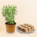 Royal Almond Treat from Shree Mithai with a Tulsi Plant